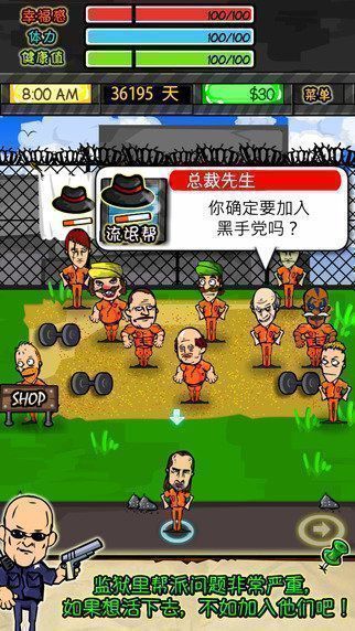 为了在恶劣环境中存活,玩家需要掌握多达18种监狱求生技能,包括格斗技巧、心理操控、物品制作、贿赂手段等。面对欺辱时,既可通过力量、敏捷、智力等属性比拼正面应对,也可采用谈判、陷害、收买等方式巧妙化解危机。每一次决策都将影响幸福感、健康值、体力与金钱等关键生存指标,构建出极具深度的策略系统。