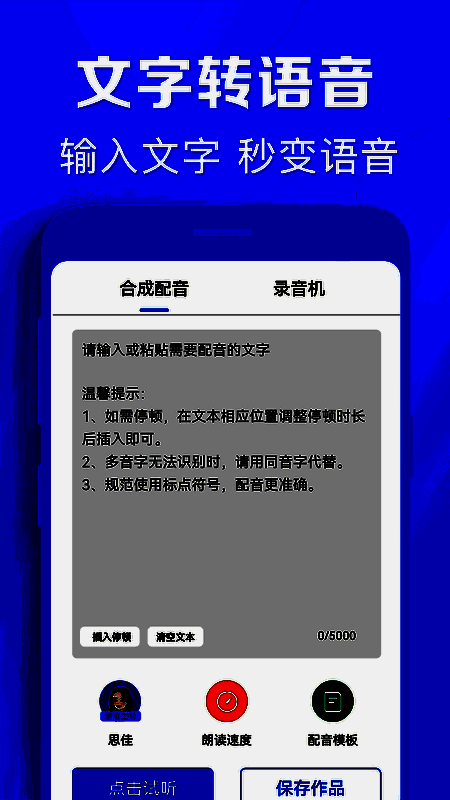 培音APP凭借其强大的适用性,能够满足从商业广告到教育音频等多种类型的配音需求。用户只需输入文字,即可快速生成自然流畅的语音内容。此外,软件支持微信等多方式登录,便于用户随时保存和调取数据,确保使用过程的安全与便捷。