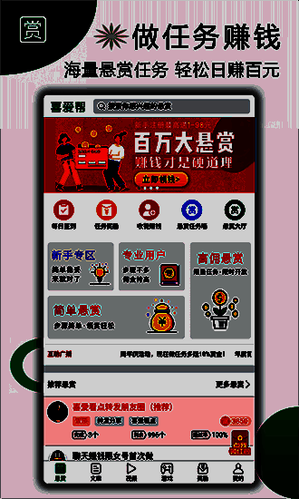 除了基础任务之外,《喜爱帮》还融合了多种趣味互动元素,如每日签到领奖励、抢红包、小游戏试玩、收徒分佣等,不仅提升了用户的参与感,也让赚钱过程变得更加轻松有趣。