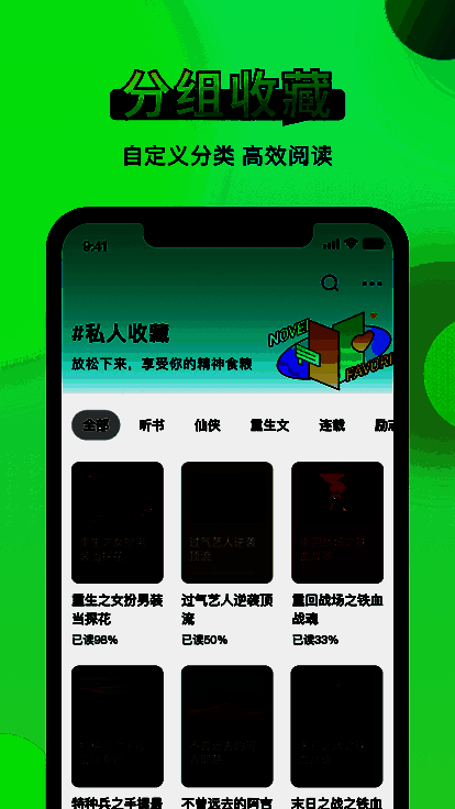 用户可将喜欢的作品添加至个人书架,并按不同类别进行整理。系统会自动记录阅读进度,在下次打开时继续上次的位置,方便又贴心。