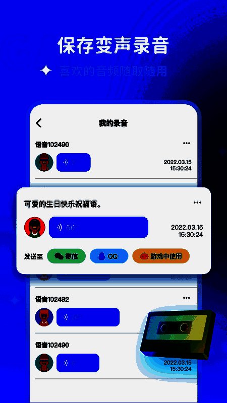 该软件不仅仅适用于日常语音聊天,还广泛支持录制视频、制作短视频等多种应用场景。无论你是主播、内容创作者,还是普通用户想要为朋友发送一段有趣的语音消息,哆啦变声器都能为你增添无限乐趣与创意空间。