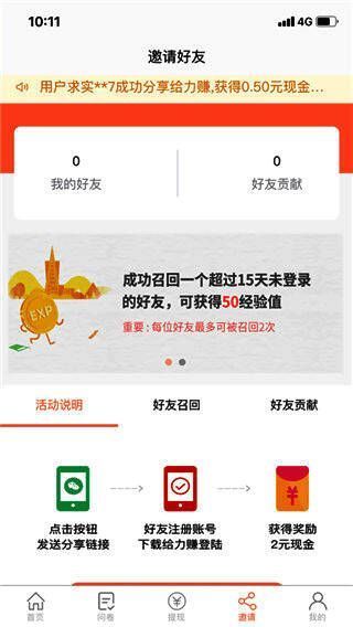 除了完成平台提供的任务之外,用户还可以通过邀请好友加入来获得额外奖励。每当被邀请的好友完成指定任务后,邀请者便可抽取一定比例的返利,这种社交裂变式推广机制有效帮助用户提升整体收益。