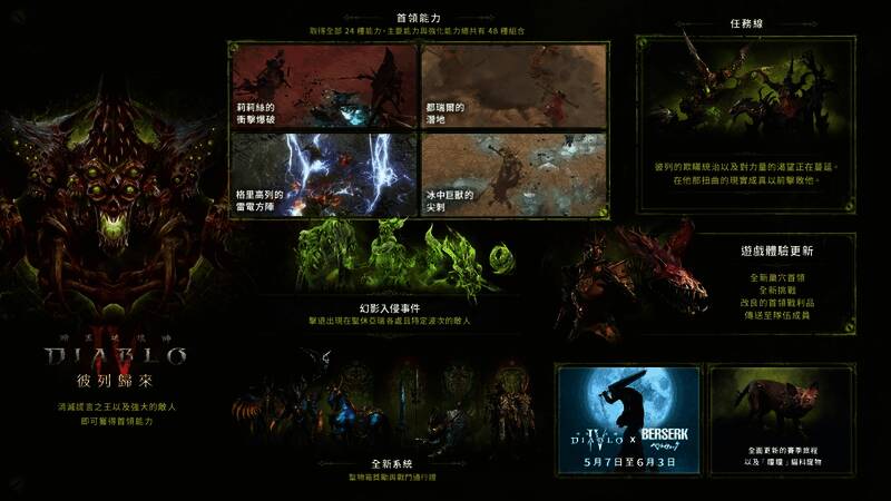 暴雪将于2025年4月24日(本周四)全面解析《暗黑破坏神IV》第八赛季“彼列归来”详情。最新发布的赛季实机预告已曝光部分核心内容,包括玩家可操控的全新首领技能与巢穴BOSS系统。