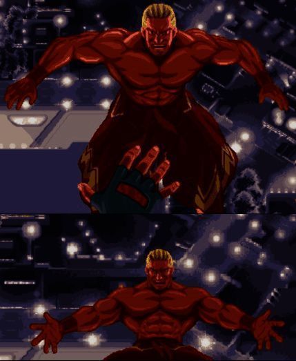两次坠楼名场面,更是尽显吉斯的恶人魅力——从《饿狼传说3》坠楼的隐忍假死,东山再起,再到《饿狼传说RB》被特瑞击败坠楼时拒绝援手,大笑着坠楼,不仅是玩家们心中难以磨灭的名场面,吉斯所表现出的枭雄般的气概,更是为先前恶人的人设增加了不少厚度。