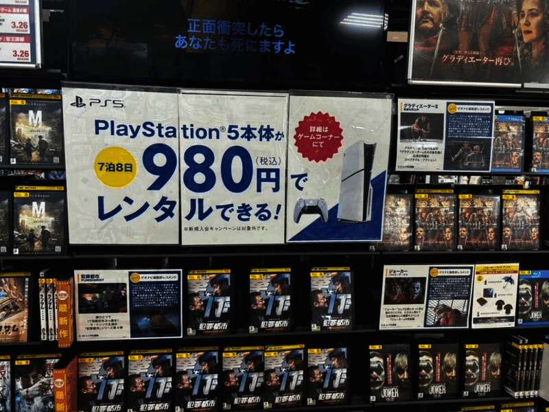 目前日本有400余家商店提供这项服务,玩家可以租用PS5游戏机8天,费用为980日元(约合人民币51元);租用15天,费用为1780日元(约合人民币92元),到期后将其归还给商店即可。
