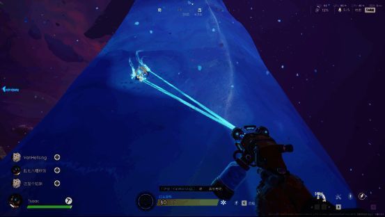 不过,虽然玩家可以在飞船外自由活动,但除非你选择的角色是机器人,不然是会有氧气限制的。而且,如果在队友开船的时候出飞船,很有可能迷失在太空中,这个时候就需要玩家及时按C键传送回飞船。所以除非跟队友沟通好了,要自己一个人独立活动(比如说收集附近太空中的燃料等等资源,或者打一些单人就能通关的小副本),或者队伍停船去等你,不然最好不要贸然出仓。