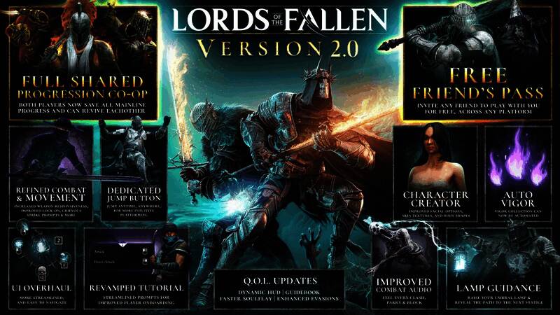 发行商CI Games和开发商Hexworks现已推出了《堕落之主》2.0版本更新,2.0版本追加了跨平台合作联机共享进度,免费的好友通行证,重做的战斗和移动系统等等。
