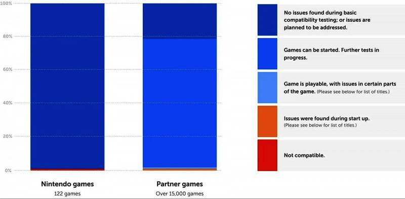 首先,任天堂截至目前一共测试了122款第一方游戏和超15000款第三方游戏,其中第一方游戏中仅有1个不兼容,第三方合作伙伴则有25%的游戏属于“无问题”类别。同时,任天堂也在官网表明下一次兼容性测试状态将在5月更新。