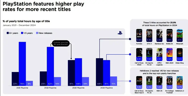 调研公司Newzoo发布的《2025年PC和主机游戏报告》显示,尽管PlayStation不断发展,但PC和Xbox平台却只能维持稳定,避免下滑。不仅如此,PlayStation上新游戏的游玩率也比老游戏更高。