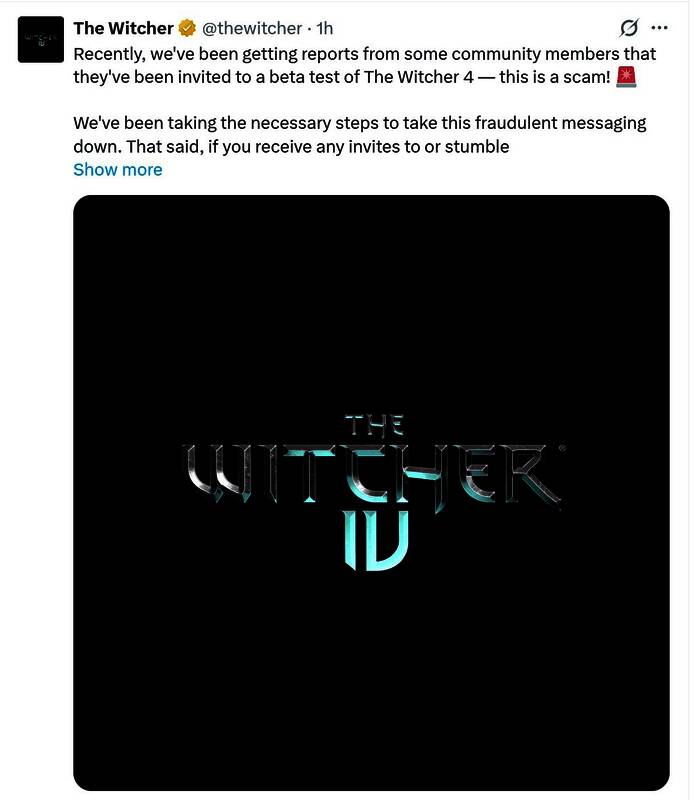 近日CDPR官方发推文警告玩家,网上出现的邀玩家参加《巫师4》Beta版测试的邀请函,是一个骗局。