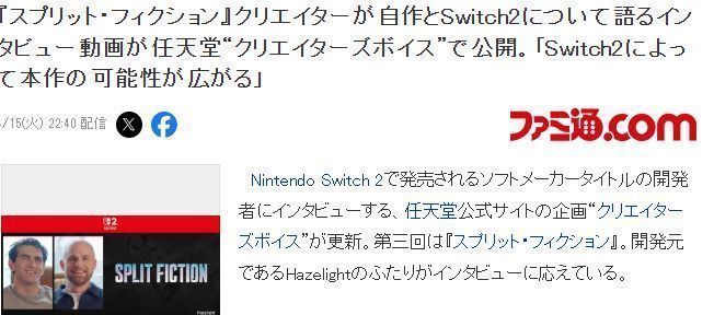 ·两人还谈到了Switch 2的合作优势,可以灵活运用主机的C键互动功能,强化合作类游戏的乐趣,今后更乐意为Switch 2开发游戏。