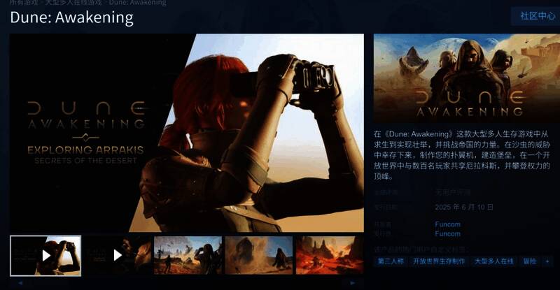 Funcom宣布开放世界生存网游《沙丘:觉醒》PC(Steam)版跳票,从原计划的5月20日延期至6月10日。玩家最早可于6月5日抢先体验游戏。