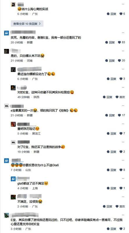 评论区有不少网友表示,自己领取游戏后就将它们“放进库里吃灰”。此番回应虽语气轻松,却在网络上引发关于“电子游戏与沉迷”议题的新一轮讨论。