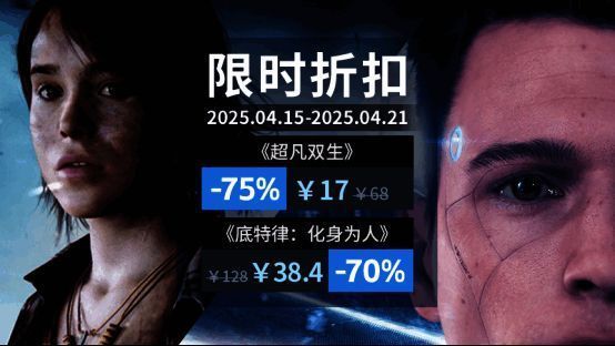 2025年4月15日至4月21日,Quantic Dream的两部叙事杰作迎来超值折扣!《超凡双生》直享2.5折的超级折扣,17元优惠价让你跟随拥有超能力的少女朱迪,体验一场跨越心灵与现实的奇幻冒险。《底特律:化身为人》低至3折38.4元起,带你走进未来的底特律,在人类与仿生人的命运交织中做出关键抉择。