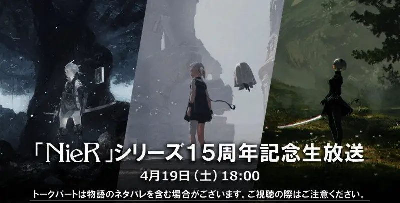 之前SE宣布,《尼尔》系列将于15周年之际,在YouTube 和 Niconico平台,于2025年4月19日下午五点开始直播纪念节目!直播将包含有关《尼尔》系列 15 周年庆典的最新信息并邀请系列开发者、声优、音乐家进行一系列座谈会以及举办一场小型音乐会。