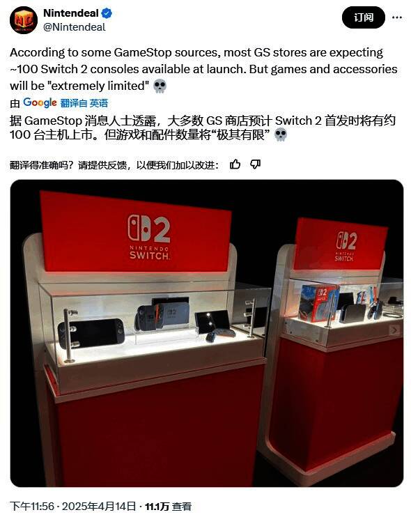 虽然GameStop官方尚未发布任何消息,但X平台用户Nintendeal(自称拥有零售渠道内部联系人)爆料称每家分店仅会分配100台Switch2主机,且部分分店配额可能更少。该爆料者还声称Switch2游戏及配件将“极度紧缺”,这对于想要在首发日凑齐整套设备的玩家而言无疑是雪上加霜。