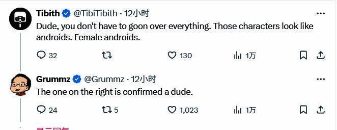 有玩家认为Grummz反woke过火,称这些就是女性机器人,但Grummz回复说:“右边那个其实是男的……”