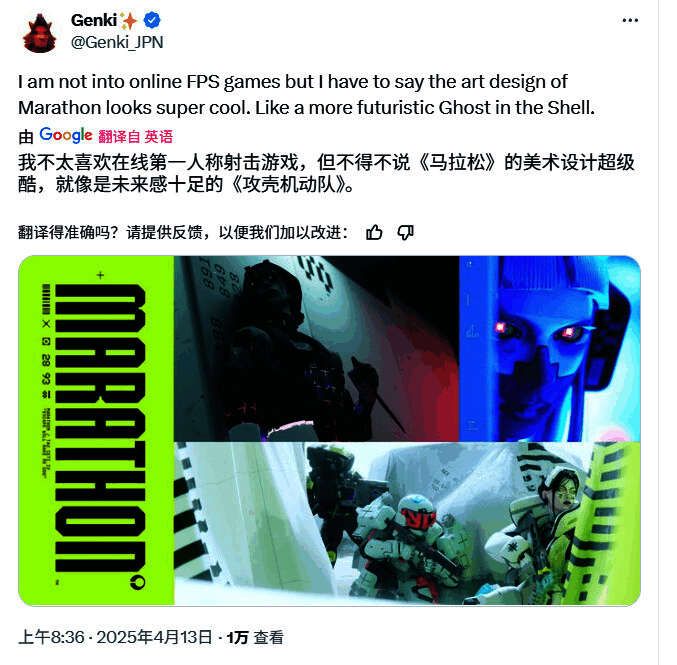 但也有知名推主大赞《失落星船:马拉松》的“前卫”艺术风格,称其像是未来版的《攻壳机动队》: