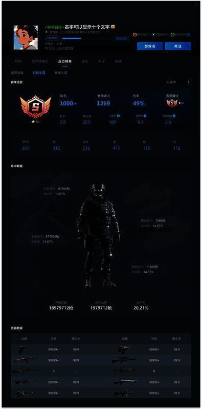 - 战神面板:战后生成专属数据报告:爆头热力图、武器专精度、残局成功率,用科学量化蜕变