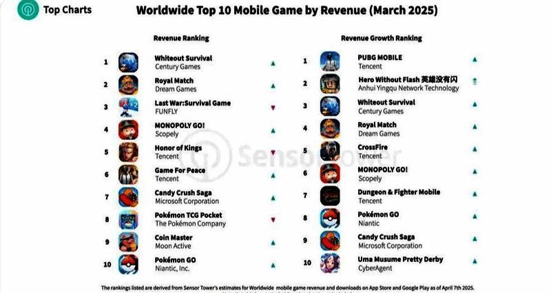 ·亚军则是土耳其梦想游戏工作室的解谜游戏《Royal Match》,第三名是中国香港FIRST FUN工作室的《LastWar:Survival》。