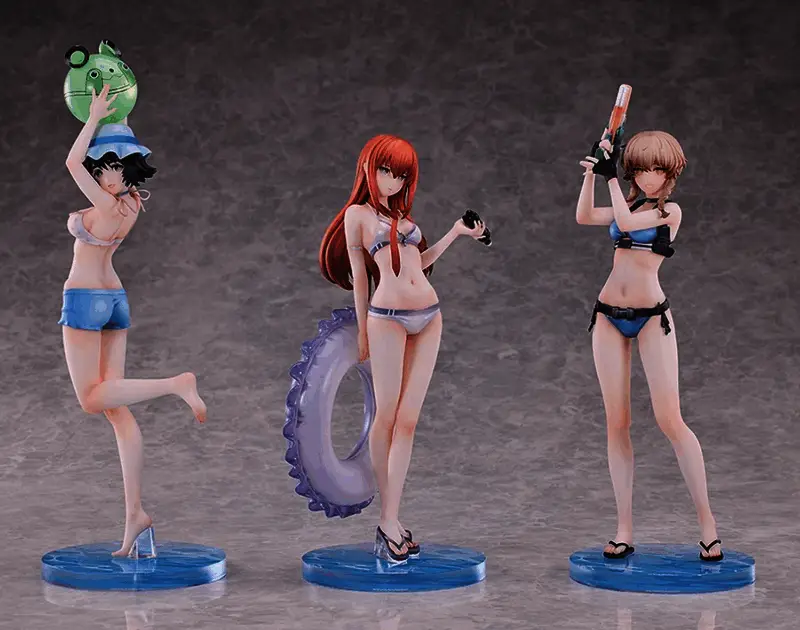 近日,GSC宣布将推出《命运石之门》三位女角色牧濑红莉栖、椎名真由理、阿万音铃羽的泳装手办,每个角色都可以单独购买,也可以一起购买成套装。单独购买的话,每个售价为 18,700 日元(约为945元人民币),套装价格为 55,000 日元(约2781元人民币)。该手办将于 2026 年 5 月在日本上市,预计在 2026 年第四季度全球发行。