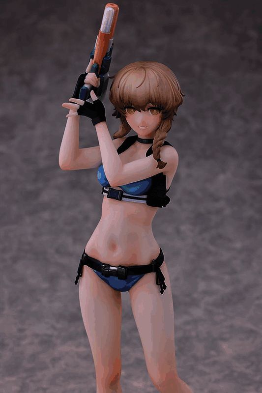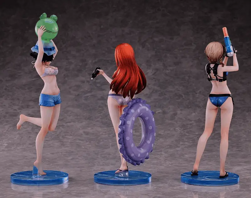 每个角色都是 1/7 比例的模型,助手大约是 9.5 英寸(240mm)。铃羽因为举着她的手枪所以稍微高一点,但她仍然大约 10 英寸(260mm)。真有理是最高的,因为她举着沙滩球过头顶,所以她超过了其他两位,接近 11.5 英寸(290mm)。