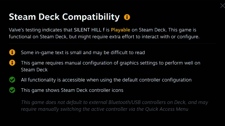近日,Valve 已发布了其官方对《寂静岭f》在 Steam Deck 上测试结果,并宣布该游戏可以在该设备上运行。