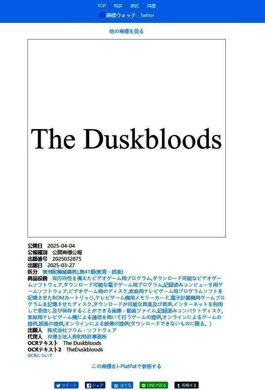 此外,FromSoftware注册的《黄昏血族》商标也确认了这一消息: