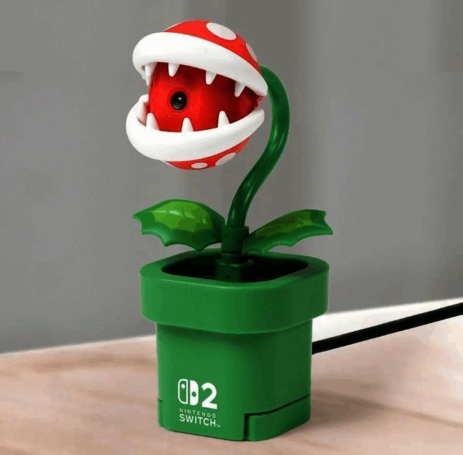 ·这台摄像头被设计成了马里奥的老对手经典食人花造型,定价39.99欧元,可以让玩家轻松实现Switch 2的视频聊天功能。
