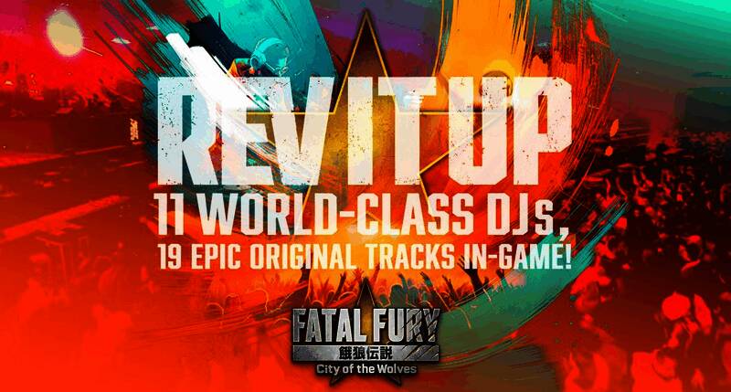 《饿狼传说:群狼之城》与11位全球知名DJ的联名合作得以实现!以“REV IT UP”为关键词,以游戏的世界观和角色为灵感而创作的19首原创乐曲,将会作为对战场景的BGM进行收录。游戏与音乐的融合将会使对战更加激烈精彩。此外,使用本作品中的“JUKEBOX”功能,还可以创建播放列表,或是在各种模式下自定义喜欢的乐曲作为BGM来使用。本次联名合作的乐曲总监,将会起用以其独自的音乐天赋及全球影响力而总所周知的人气艺术家萨尔瓦多·加纳奇来担当。除了在策划和协调这项活动中发挥关键作用外,他还亲自提供原创音乐。