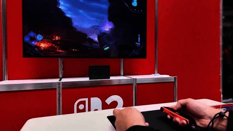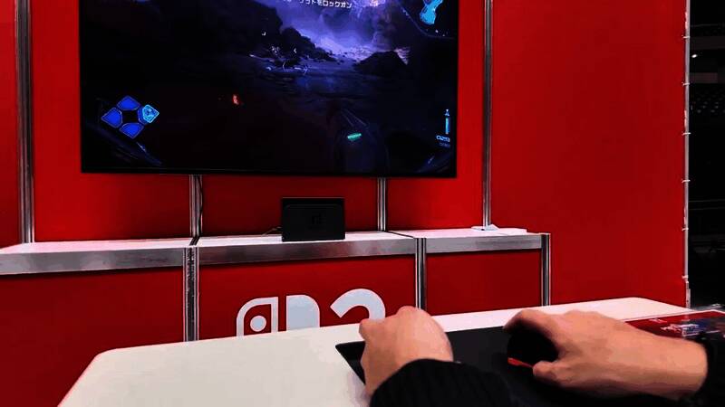 Fami通现场展示了操作Joy-Con手柄的不同动作,可实现类似于拖动鼠标,操作摇杆实现视角的上下左右控制,按下前置按钮实现射击等功能。