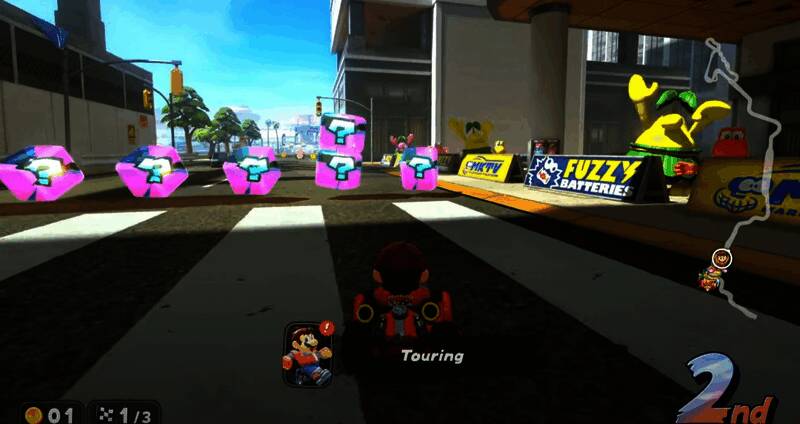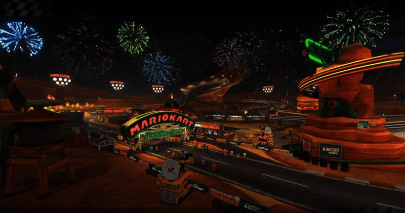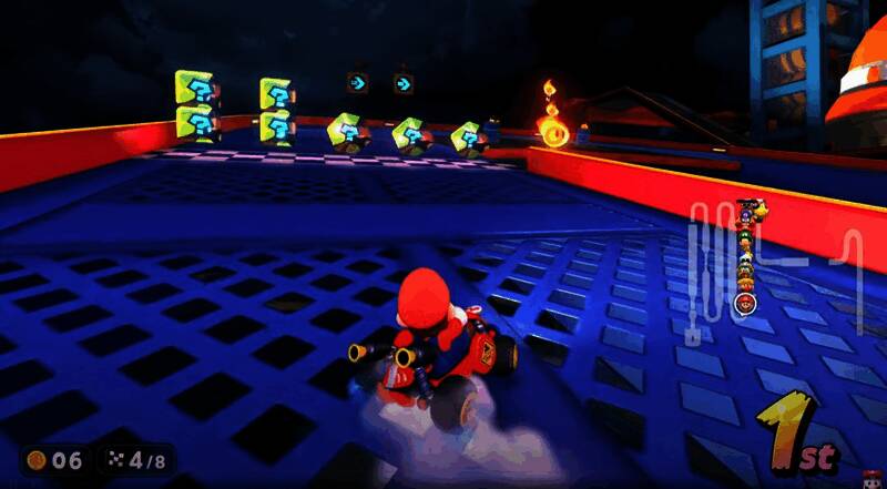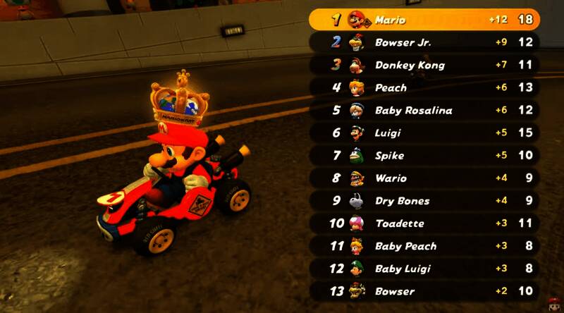 《马里奥赛车》系列熟悉的锦标赛模式,让玩家互相竞争名次。这次拥有系列最多的24人对战,且每条赛道之间互相连通。