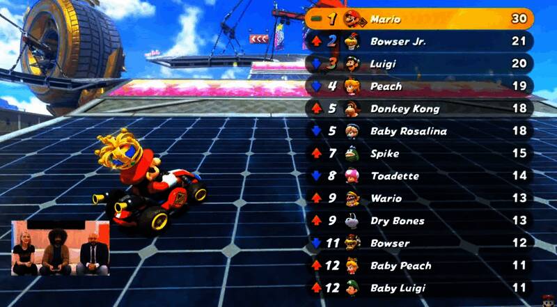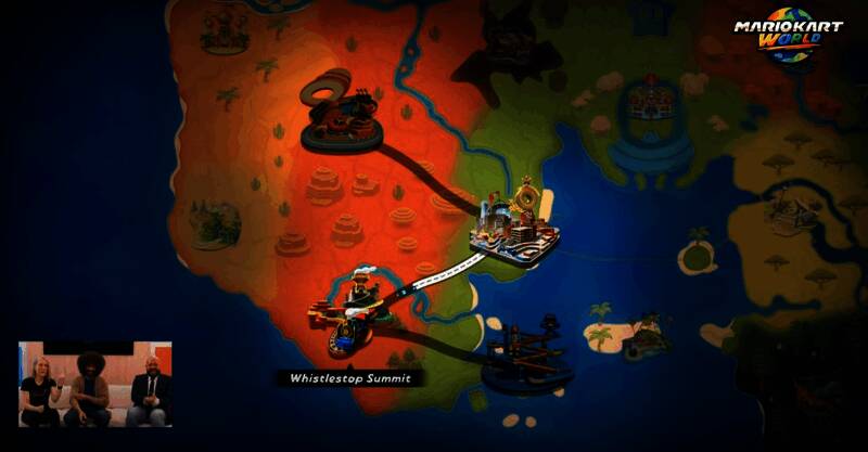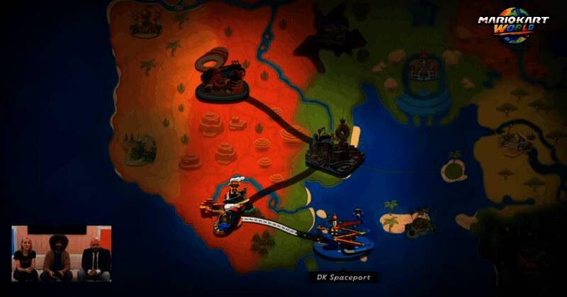 任天堂树屋直播正在进行中,首个展示的游戏是首发护航游戏《马里奥赛车:世界》。直播展示了经典的锦标赛模式,进行了四轮比赛,每轮比赛都比上场更难,每轮竞赛都是不同的环境设定。随后展示了自由漫游模式。
