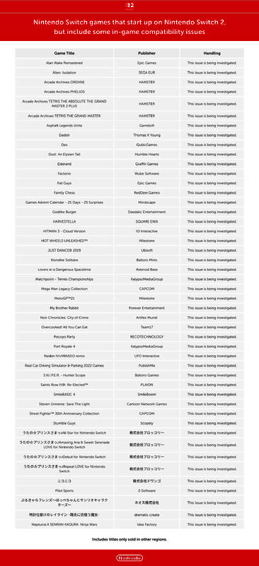 在Switch 2上,第三方无法启动游戏名单: