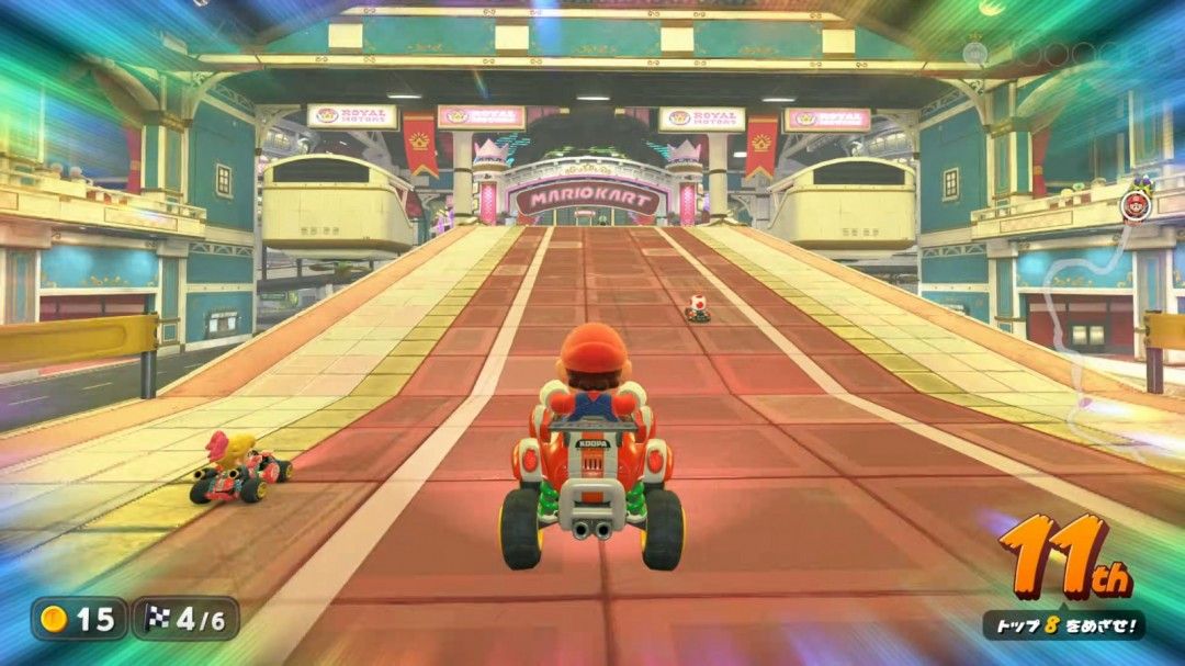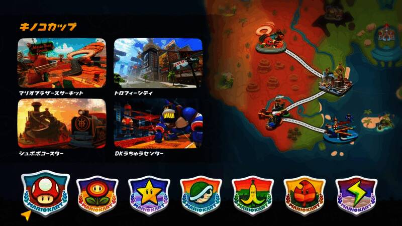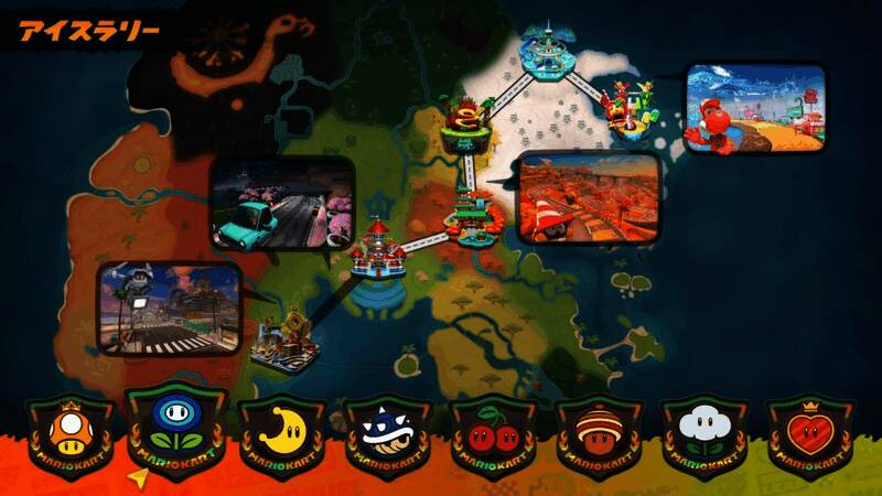 《马里奥赛车》系列熟悉的锦标赛模式,让玩家互相竞争名次。这次拥有系列最多的24人对战,且每条赛道之间互相连通。