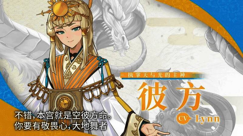 “彼方”是于东国执掌天与光的神明,是众神的代表。头脑清晰,性格认真,也有着稍显孩子气的一面。