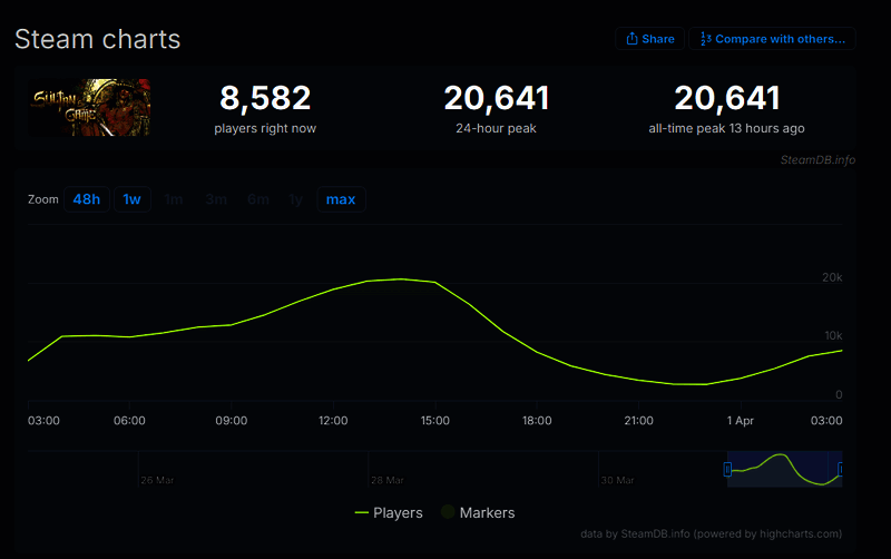 据Steamdb数据,本作一经发售,本作的在线玩家人数迅速攀升,目前已经突破两万大关,在线人数达到了20641人。虽然本作热度如此爆炸,但是Steam评价却为“多半好评”,原因就是本作中有很多男同剧情,而且这些剧情在官方宣传和众筹阶段并未明确提及,导致玩家会被突如其来的男同剧情跳脸,引发了许多玩家们的怒火。