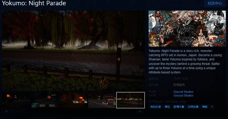 今日(4月1日),回合制捕捉怪物类RPG《Yokumo: Night Parade》Steam页面开放,发行日期待定,不支持中文,感兴趣的玩家可以点击此处进入商店页面。