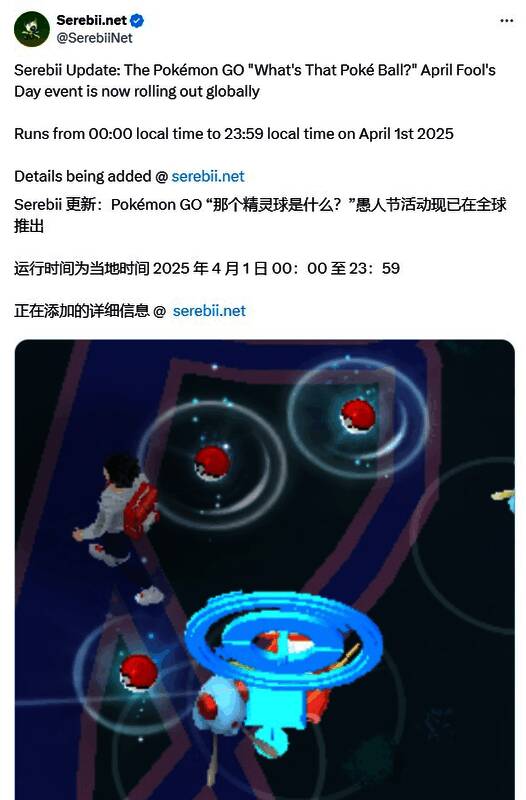 2025年愚人节活动将带来全新互动形式——地图上随机刷新精灵球道具,点击后可遭遇特定宝可梦:普通形态与洗翠形态的顽皮雷弹家族、蘑蘑菇家族,以及长着精灵球鼻子的伽勒尔泥巴鱼,幸运的训练家还能遇见闪光形态。除扩充图鉴外,每次遭遇都将获赠精灵球补给。活动仅限当地时间4月1日0点至23:59开放。