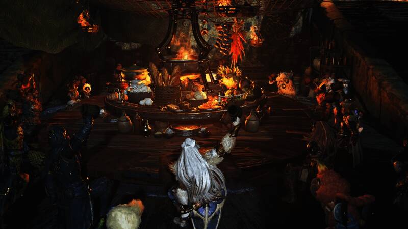 在《怪物猎人:荒野》大集会所中,玩家可以享受艾露猫准备的美味佳肴,还能与其他猎人交流互动。此外,玩家还能通过掰手腕比赛来增进友谊。