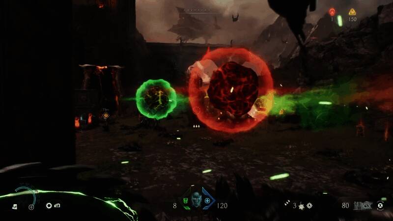至于哪些敌人的攻击可以被偏转,哪些不能,这基本上就是交通灯规则——红色表示停止,绿色表示通行。或者对于星球大战粉丝来说,红色表示不好,绿色表示好。关键是,你必须不断保持移动,才能穿过敌人的红色火力波,但当你看到绿色爆发时,你需要冲向危险,以便完美击退一切,从敌方弓箭手发射的灼热能量箭到笨重的地狱坦克发射的致命齐射