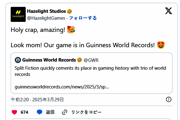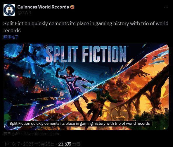 《双人同行》开发商Hazelight Studios继本作好评口碑之后,近期刚刚发售的新游《双影奇境》再次收获压倒性好评如潮,销量口碑双丰收,日前官方宣布突破三项游戏吉尼斯记录。