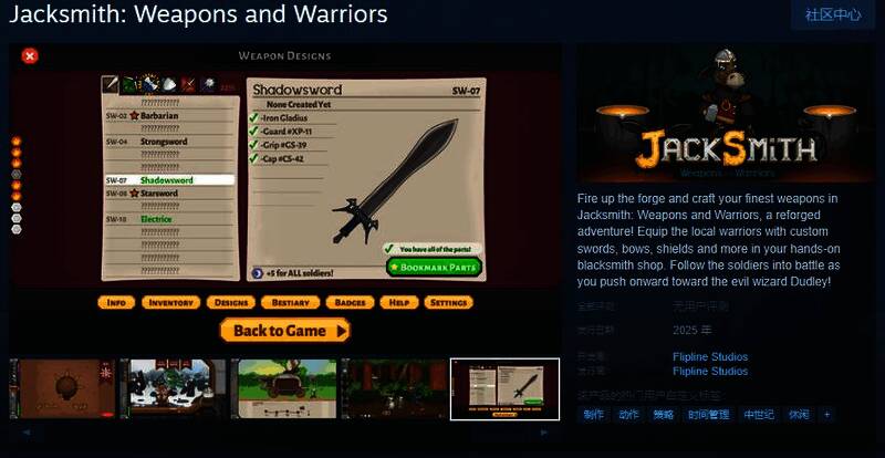 今日(3月28日),模拟经营《杰克驴铁匠:武器与战士》Steam页面开放,2025年发售,游戏不支持中文,感兴趣的玩家可以点击此处进入商店页面。
