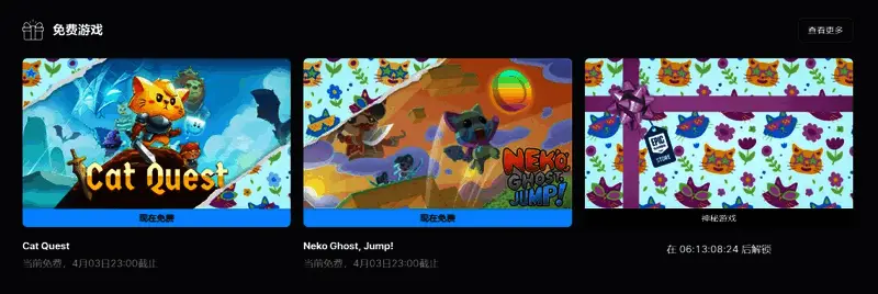 Epic商店本周免费送两款游戏,玩家可以免费领取冒险游戏《猫咪斗恶龙》。领取时间截至4月3日23:00,用户只要登陆Epic商店领取游戏,就可永久保存到游戏库中。除此之外,玩家还可以领取解密游戏《Neko Ghost,跳!》,千万不要忘记领取。