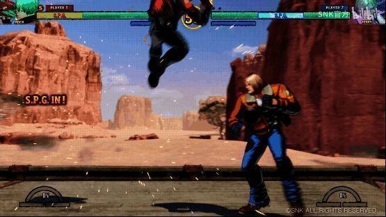 而不同的是,“REV重击”有着相对硬性的释放条件,即仅限于在角色血量处于S.P.G.阶段释放,但其可以在空中进行释放的设计让玩家有了更多的选择。(《SF6》的斗气迸放只能在角色站立时使用)