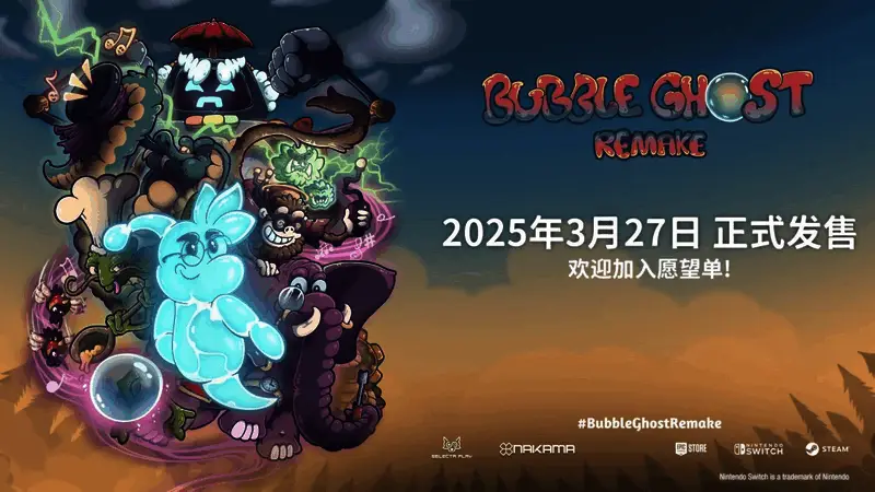 发行商Selecta Play 宣布,《泡泡幽灵 REMAKE》——基于 90 年代经典作品《泡泡幽灵》全手绘完全重制版,于今日(3月27日)正式发售,登陆PC(Steam),Nintendo Switch,PlayStation 5以及Epic Games Store,并同步发布全新发售宣传视频!