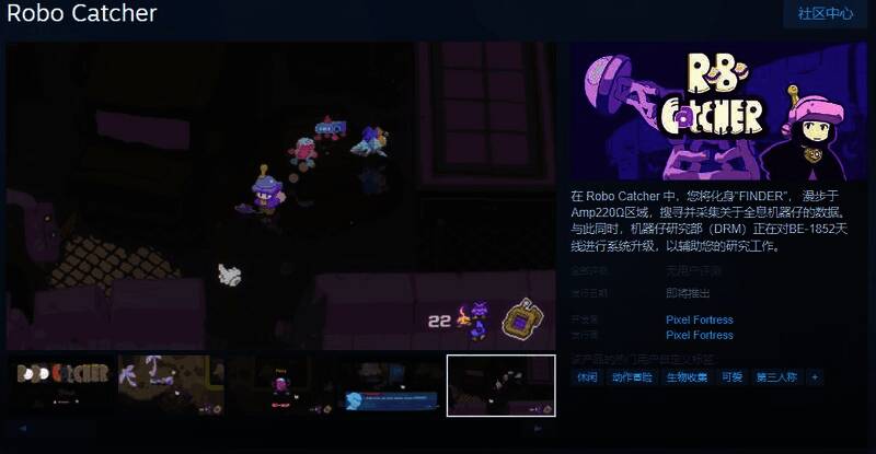 今日(3月27日),休闲生物收集冒险游戏《Robo Catcher》Steam页面开放,发售日待定,游戏支持简体中文,感兴趣的玩家可以点击此处进入商店页面。
