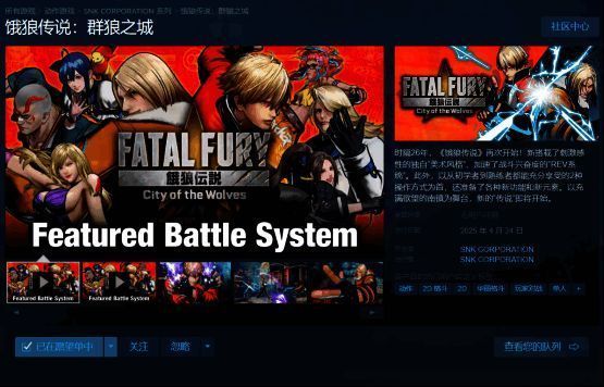 《饿狼传说:群狼之城》已上线Steam商店,点击此处即可一键将游戏加入愿望单。