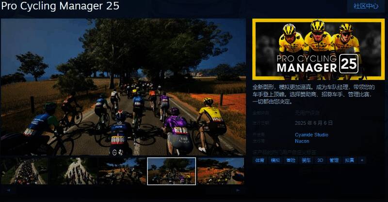 今日(3月26日),《职业自行车队经理2025》Steam页面公布,游戏不支持中文,预计于6月6日发售,感兴趣的玩家可以点击此处进入商店页面。