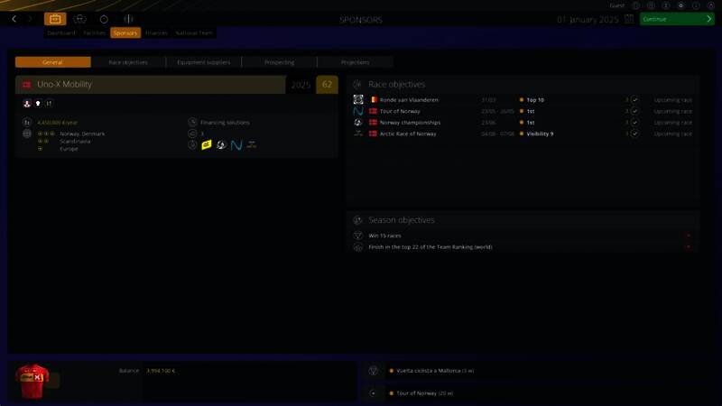 在 Pro CyclingManager 25 中,赞助商的选择对于您团队的成功至关重要。除了预算优势之外,如果您希望赞助商同意为您的自行车队提供资金,他们现在还需要满足自己的额外参数和条件。